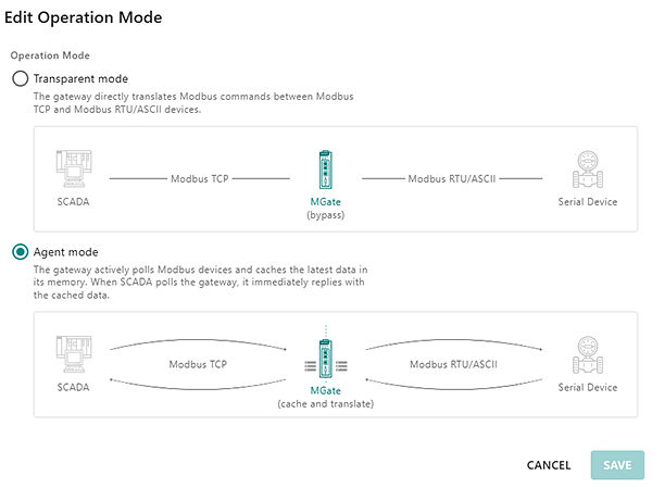 - Высокопроизводительный режим Agent Mode с низкой задержкой для активного опроса Modbus устройств и кэширования данных.