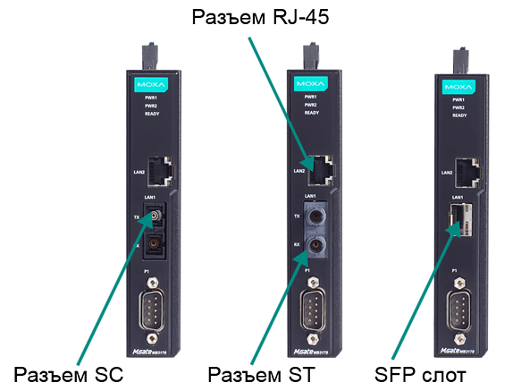 Новые модели MGate MB3000-G2 доступны в нескольких версиях: с разъёмом DB9 или с клеммной колодкой, оборудованной фиксатором типа «push-and-pull». Это позволяет подобрать оптимальный способ подключения под конкретные условия работы. В разных модификациях устройство может иметь два порта RJ45, один RJ45 вместе с разъёмом SC/ST или один RJ45 в сочетании с SFP-слотом. Такой выбор конфигураций обеспечивает гибкость при работе с оптоволоконными линиями и делает интеграцию устройств в существующую сеть значительно проще.