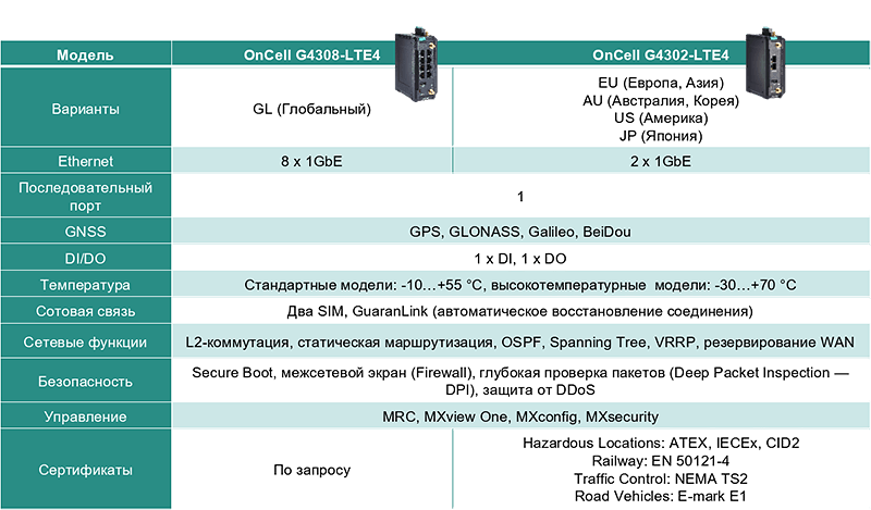 Компания Moxa представила новое устройство в составе флагманской линейки OnCell G4300‑LTE4 — модель OnCell G4308-LTE4. Это промышленный LTE-маршрутизатор нового поколения с широкими функциональными возможностями, который сочетает в одном корпусе гигабитный маршрутизатор на 8 портов, встроенный firewall, LTE Cat.4-модем и современные инструменты киберзащиты. Использование OnCell G4308‑LTE4 упрощает построение сетевой инфраструктуры, устраняя необходимость в сложных составных решениях и позволяя существенно сократить затраты на внедрение и дальнейшее обслуживание.