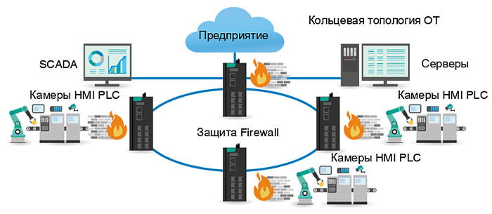 Данные устройства обладают функциями управляемого коммутатора, благодаря чему можно создать отказоустойчивую сеть на основе таких протоколов резервирования как RSTP или Turbo Ring