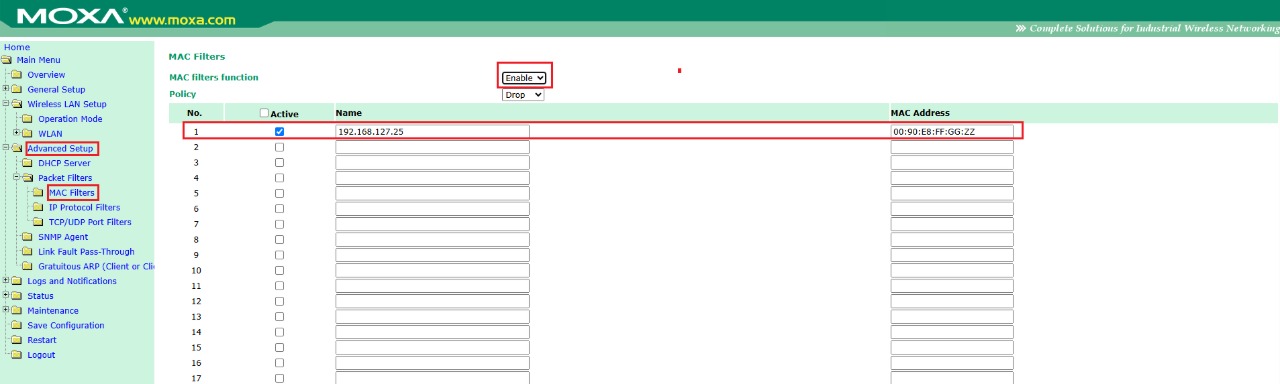 Есть ли возможность обеспечить подключение к данной точке доступа устройств используя фильтрацию по MAC адресу?